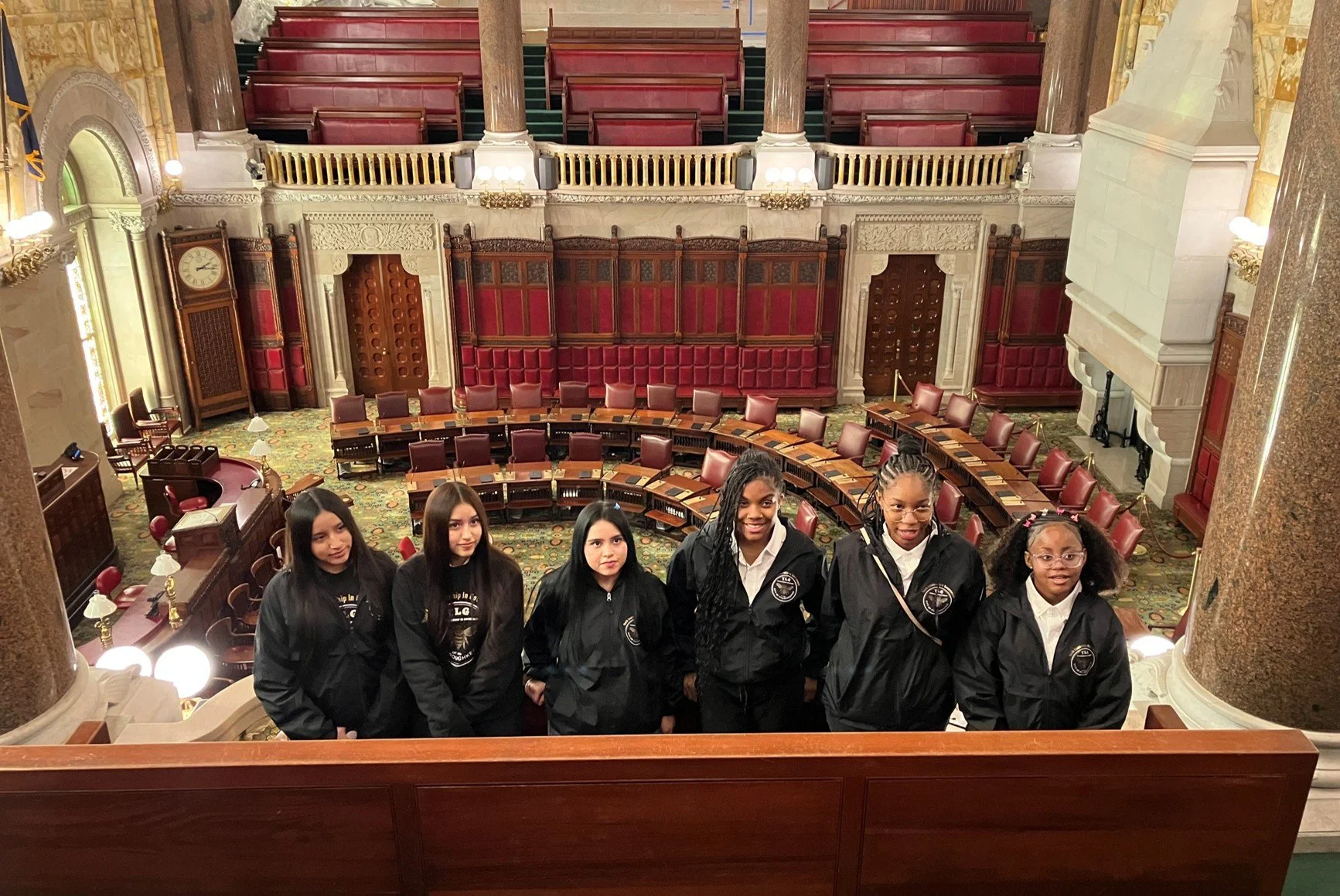 Participants from the Youth Leadership in Government (YLG) program at the New York State Capitol Senate Chambers